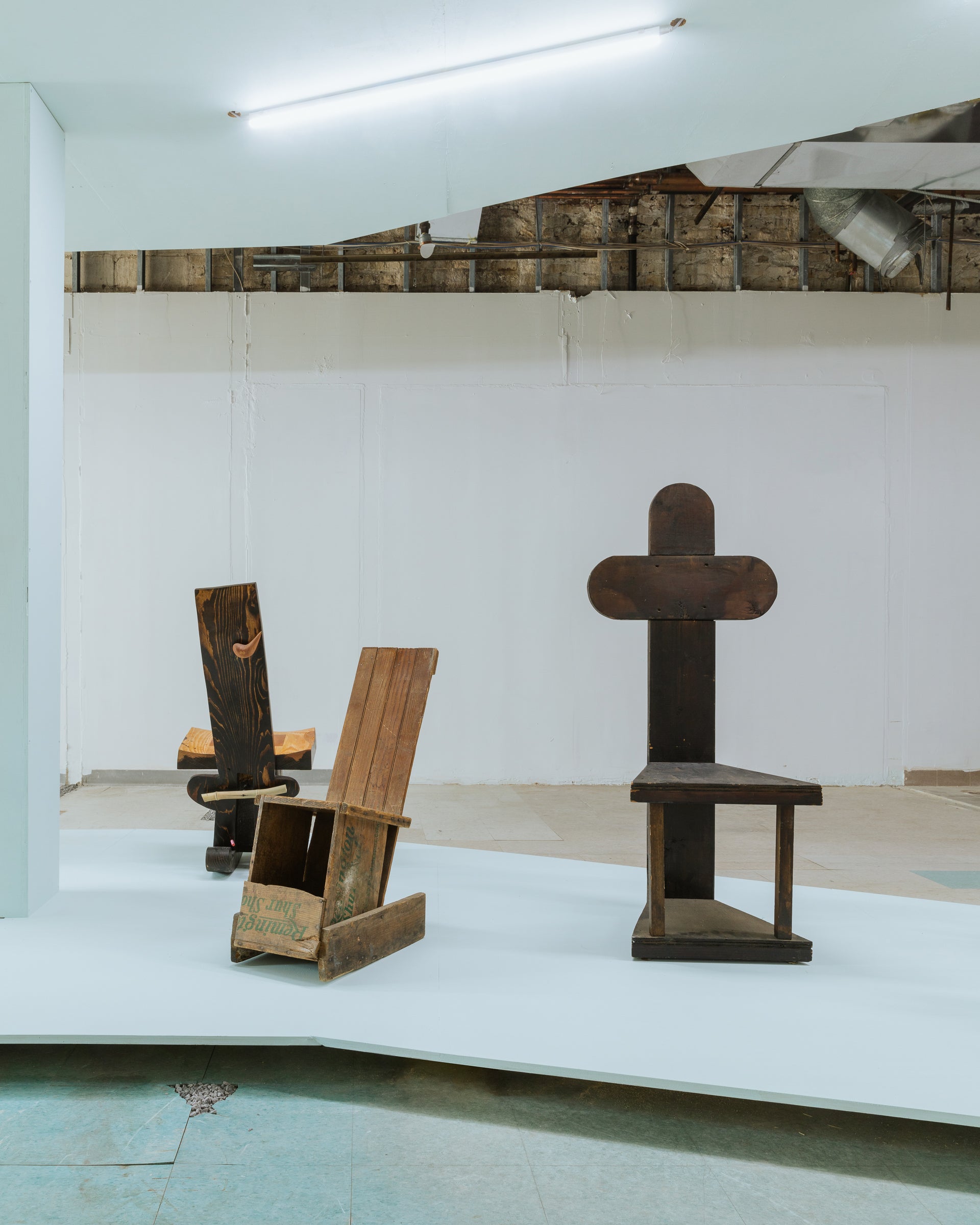 Exhibition scenography and location scouting by Office Cat Snodgrass. Exhibition concept and historical curation by Catalog Projects. Historical chairs sourced by Avi Kovacevich (Principal, Catalog Projects), Derek Magnette, Eric Oglander, and John Radtke.