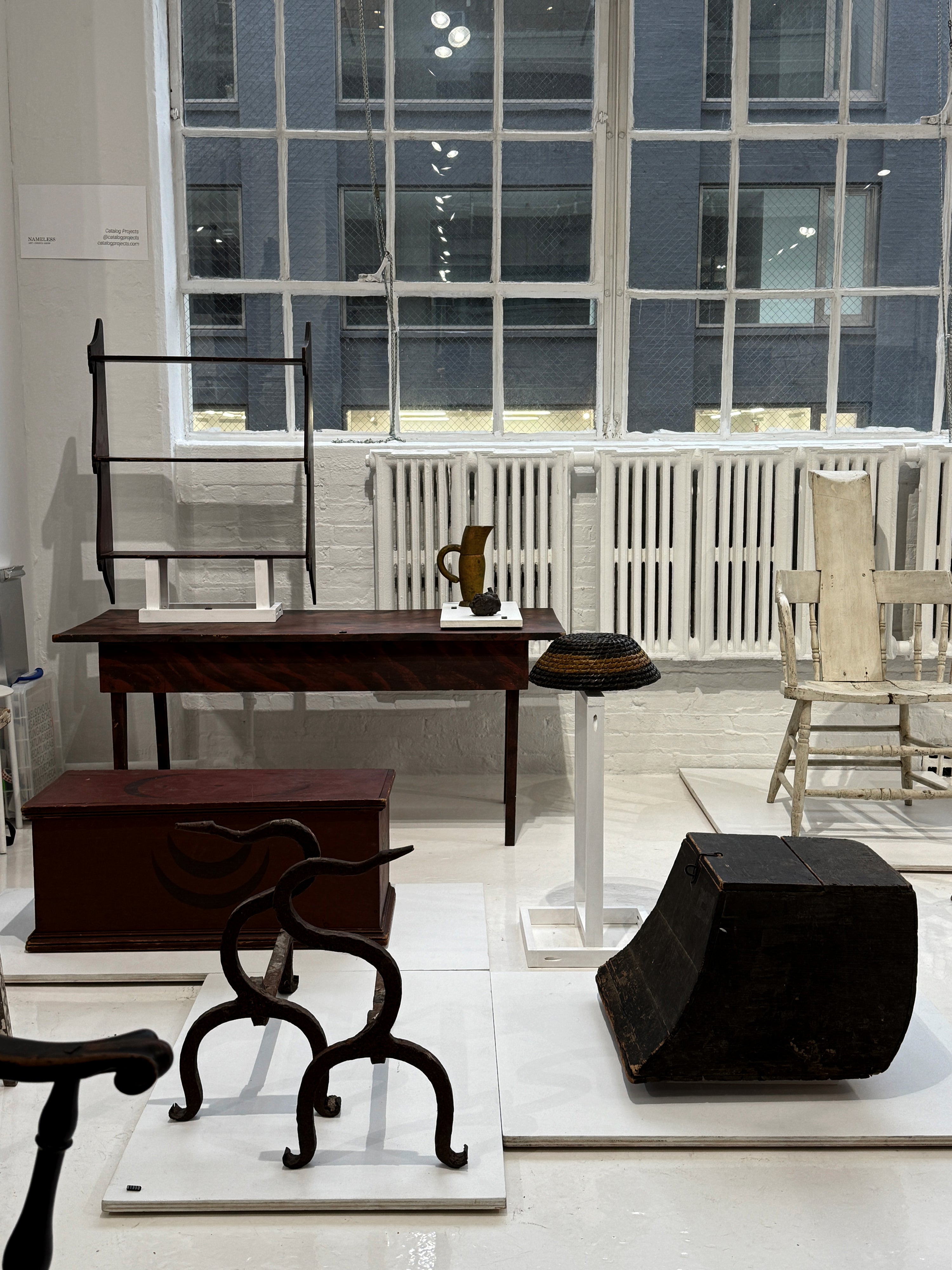 Catalog Projects assembled a collection of twelve works, partially pictured below, focused on American Country and Vernacular furniture and objects with precocious, clean, and artful forms, drawing the throughline directly to Modernism, Minimalism, and Abstract Expressionism.