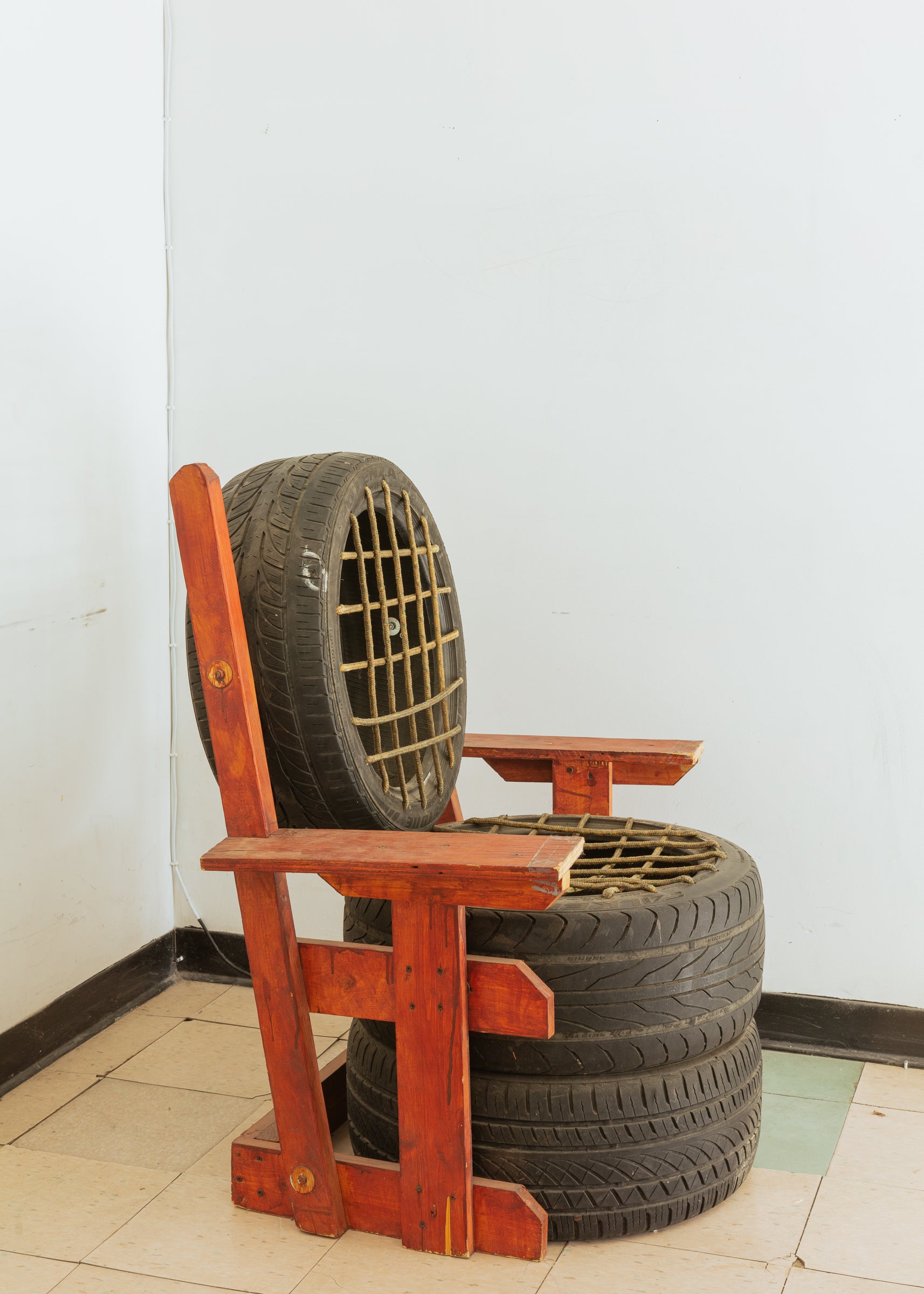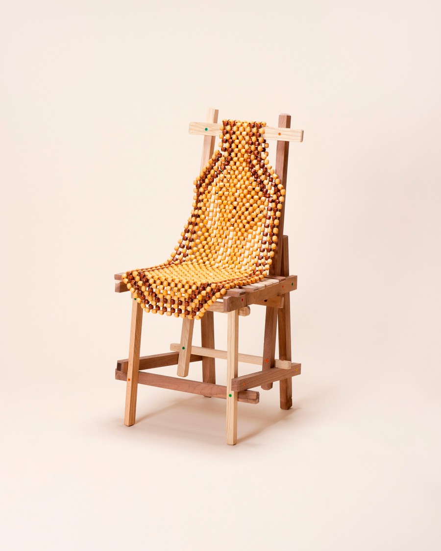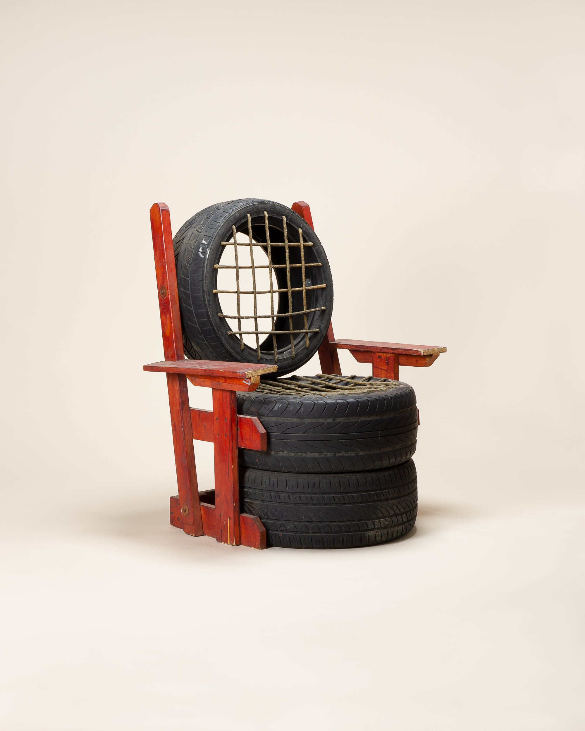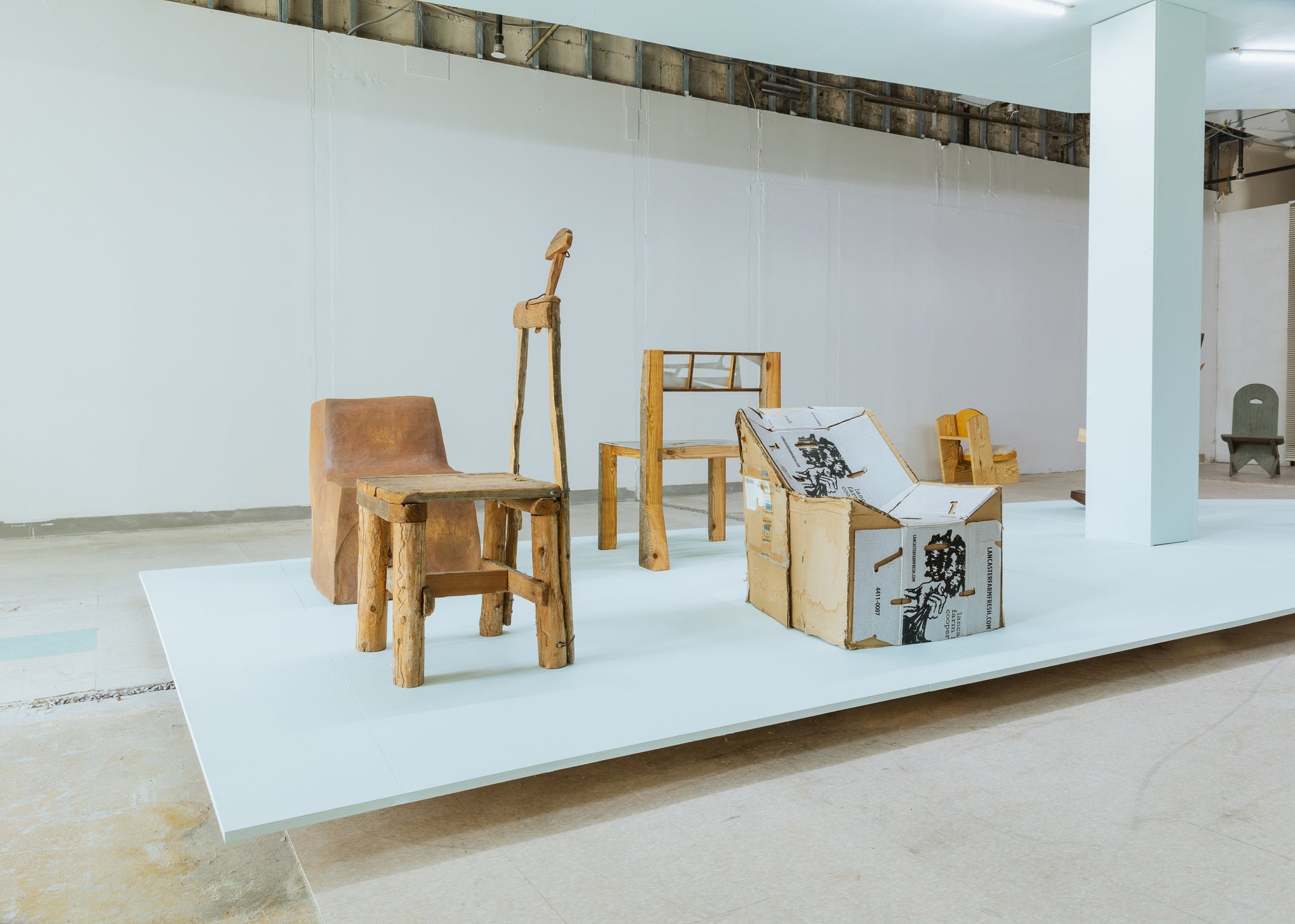 Avi Kovacevich, founder of Catalog Projects, curated 12 idiosyncratic chairs – objects made from carpet, car tires and wheelbarrow parts – alongside new commissions from a dozen New York designers, including Minjae Kim and Nifemi Ogunro, who were tasked with creating a new chair in three days.